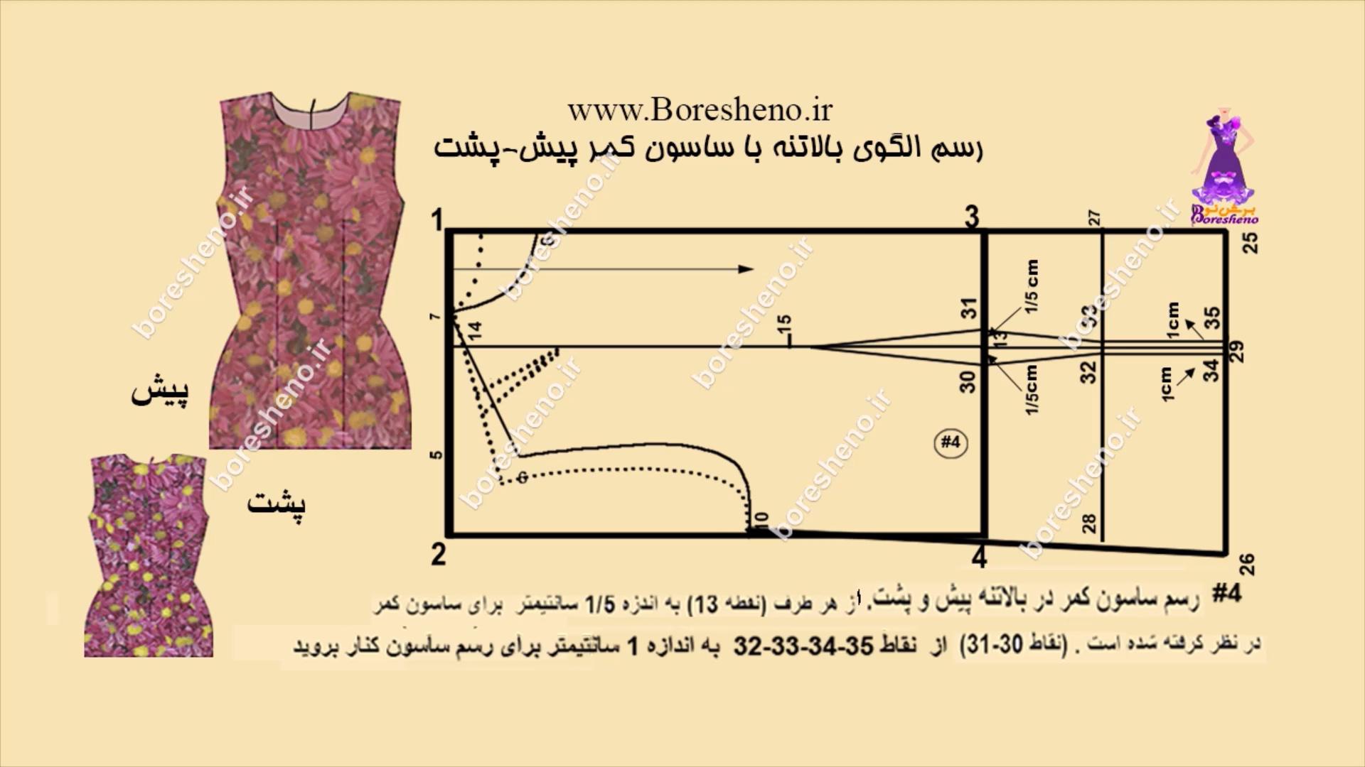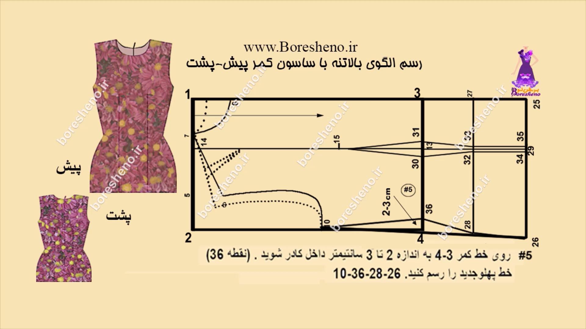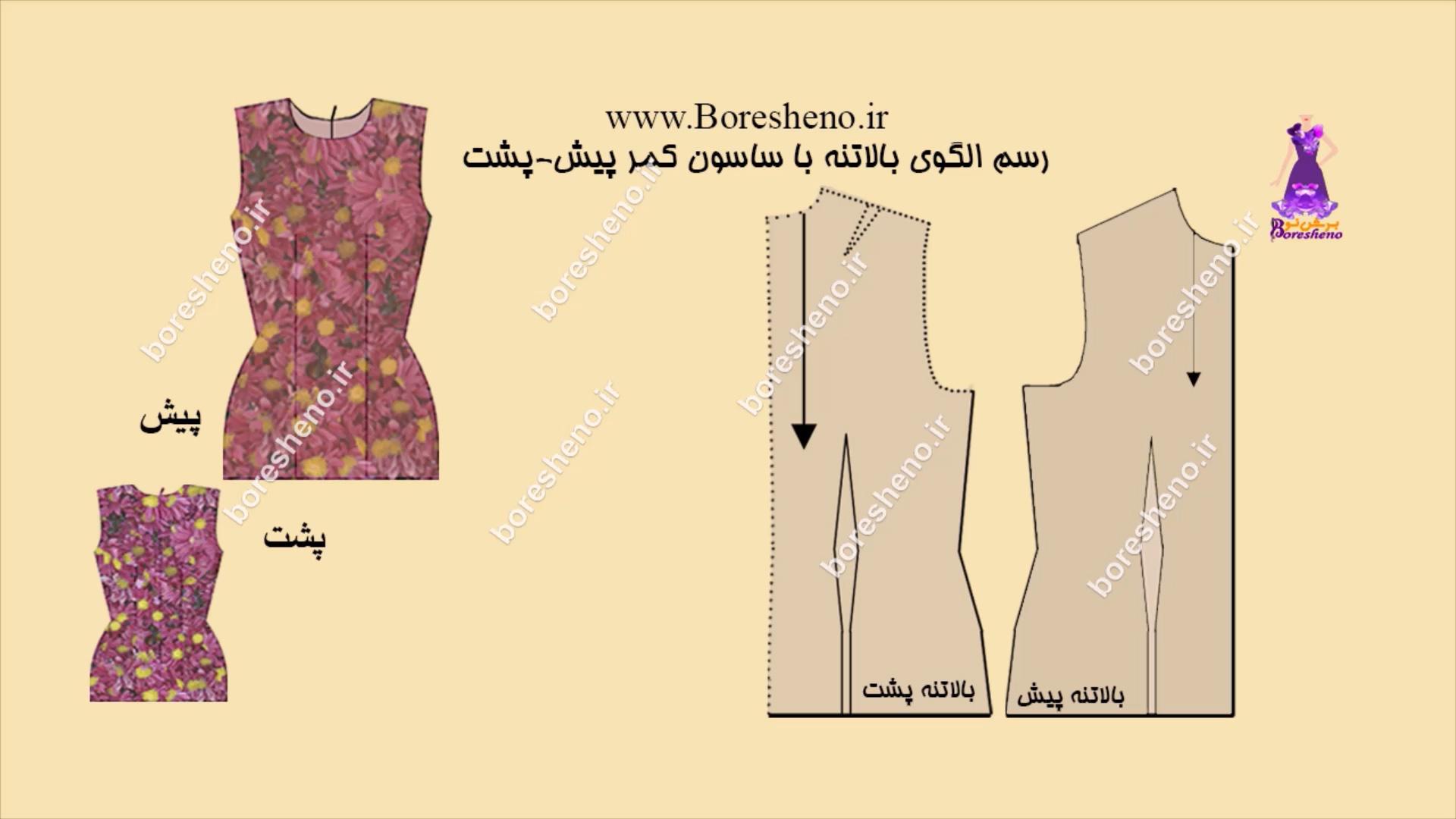# آموزش رسم ساسون کمر در بالاتنه پیش-پشت قدم به قدم بروش آسان در برش نو