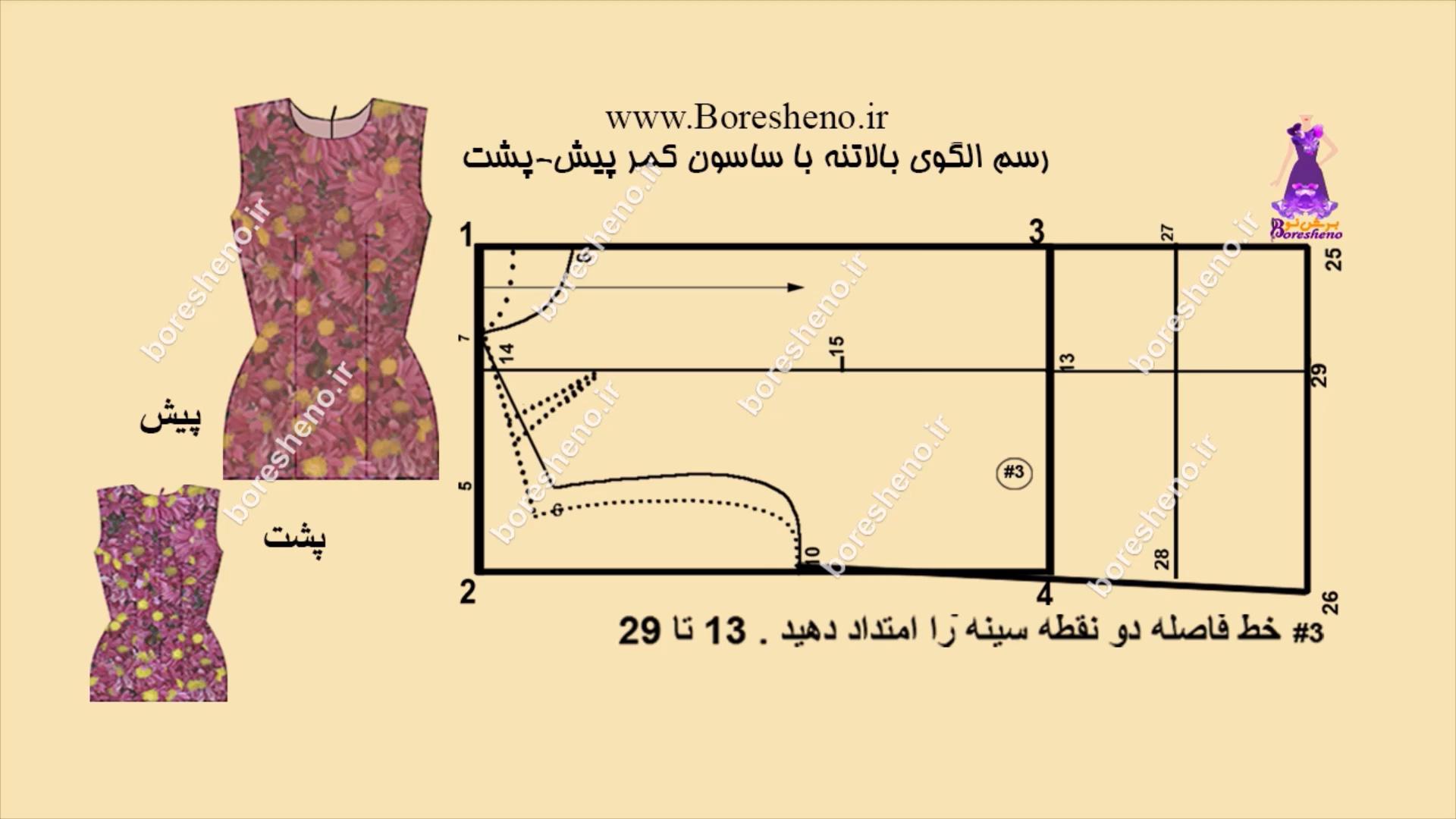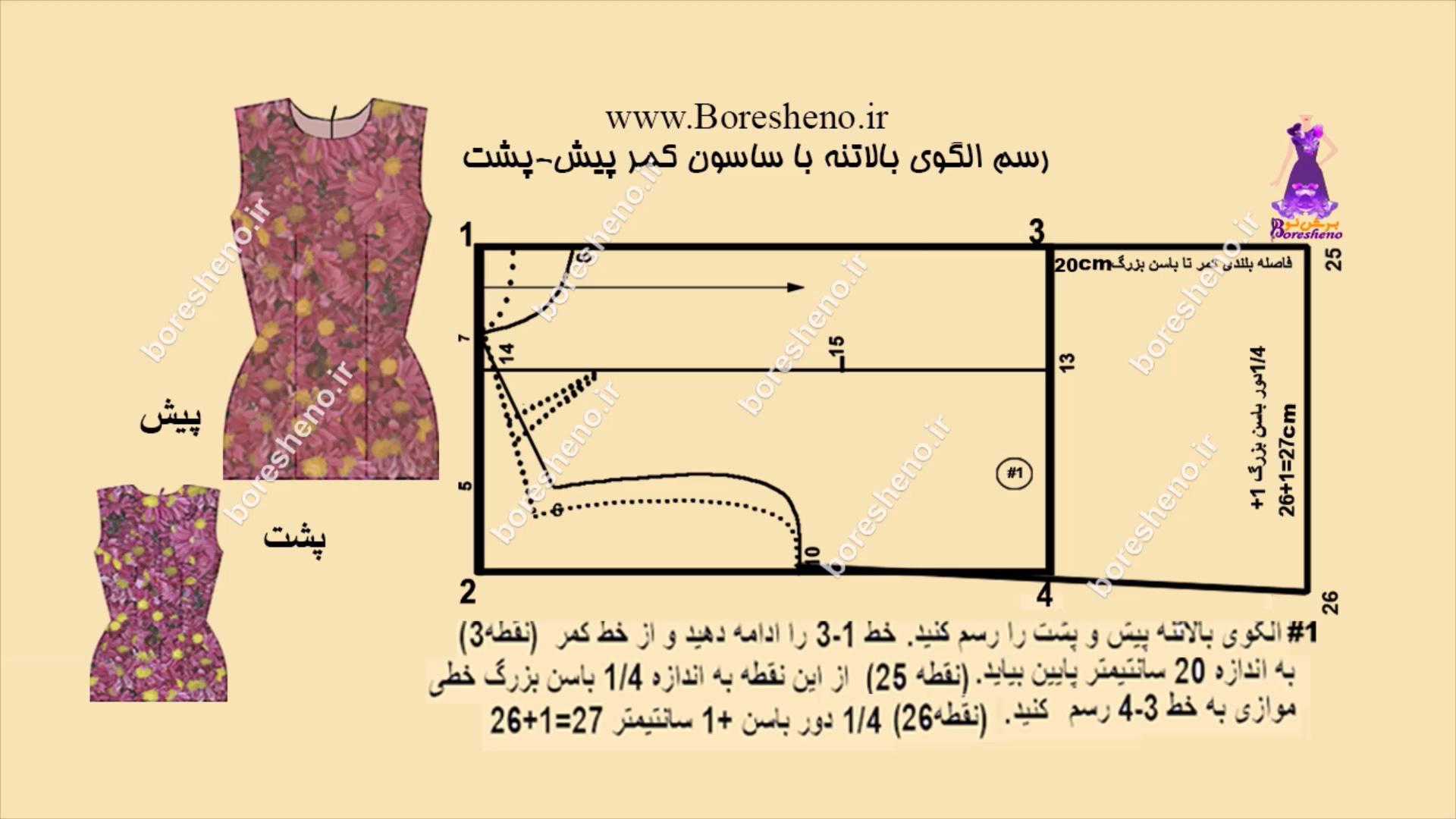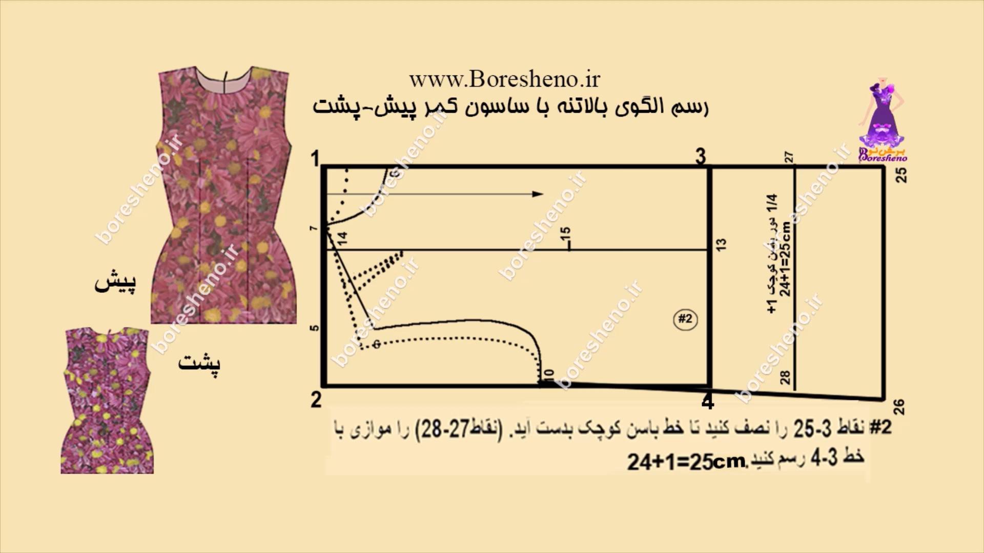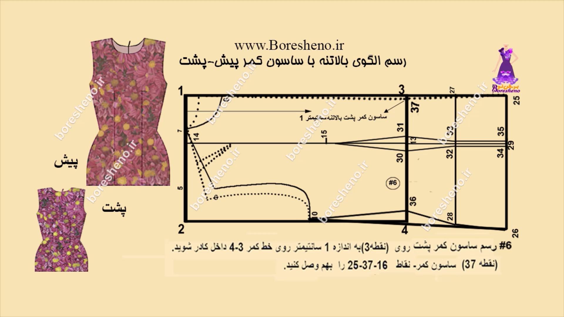 # آموزش رسم ساسون کمر در بالاتنه پیش-پشت قدم به قدم بروش آسان در برش نو
