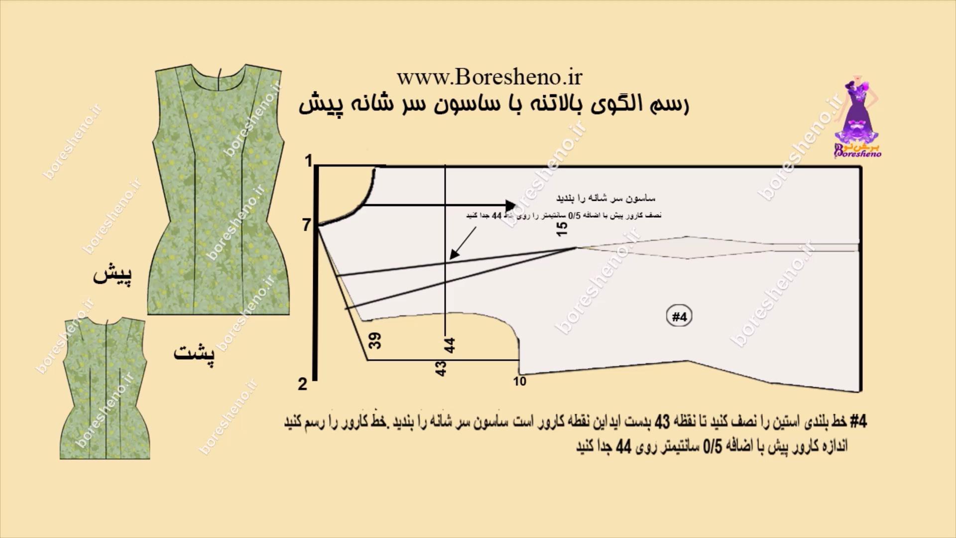 # آموزش رسم الگوی بالاتنه با ساسون سر شانه پیش قدم به قدم بروش آسان در برش نو