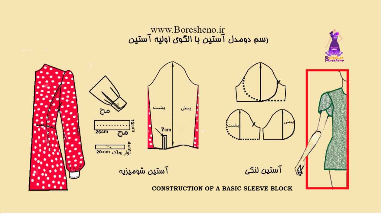 #طراحی چند مدل استین با الگوی اولیه استین قدم به قدم بروش آسان در برش نو