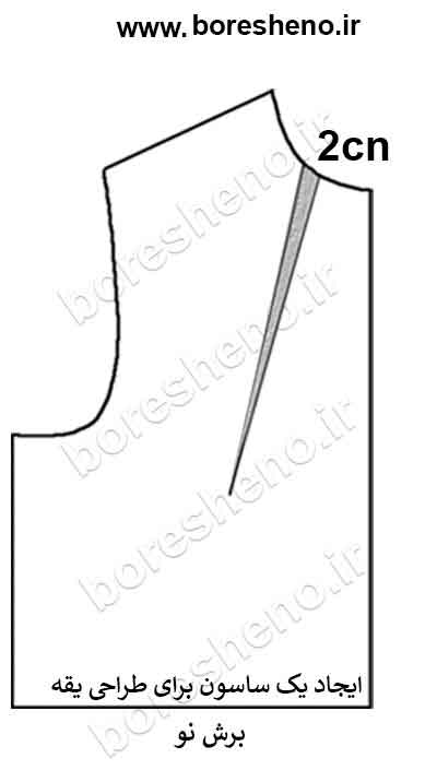 توجه: اندازه ساسون در یقه های بازتر تا 2 سانتیمتر(یا با رسم دو ساسون 1 سانتیمتر ) افزایش دارد.