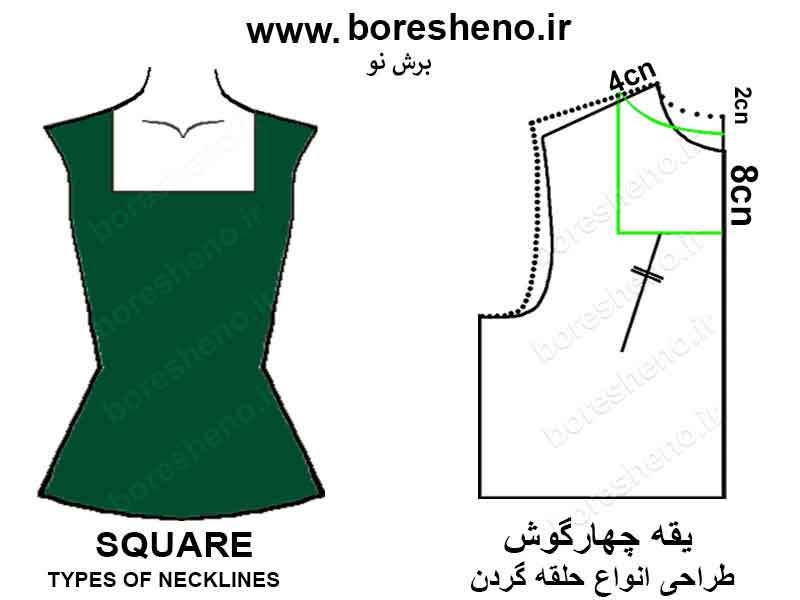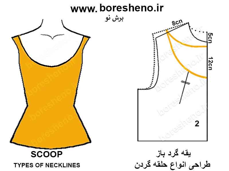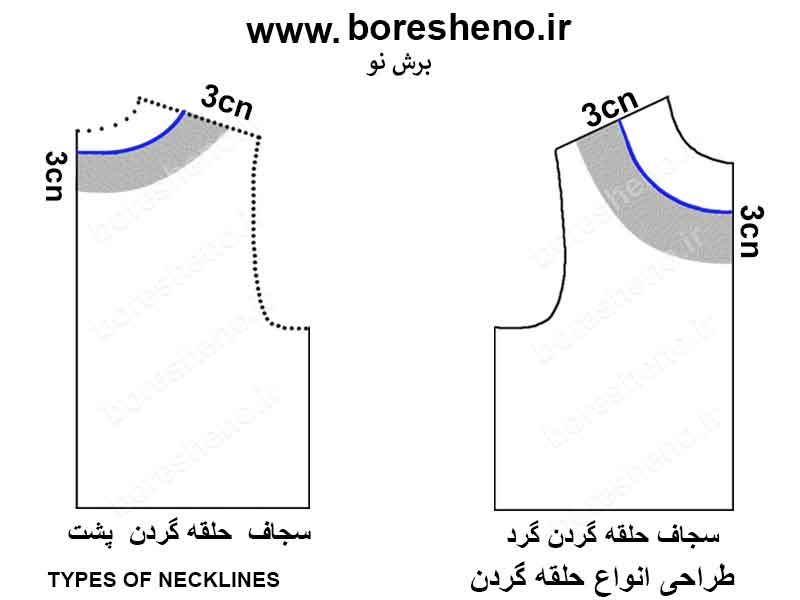 توجه : اندازه ها در طراحی یقه ثابت نیستند. متاسب با طرح یقه در لباس تغیر می کند.