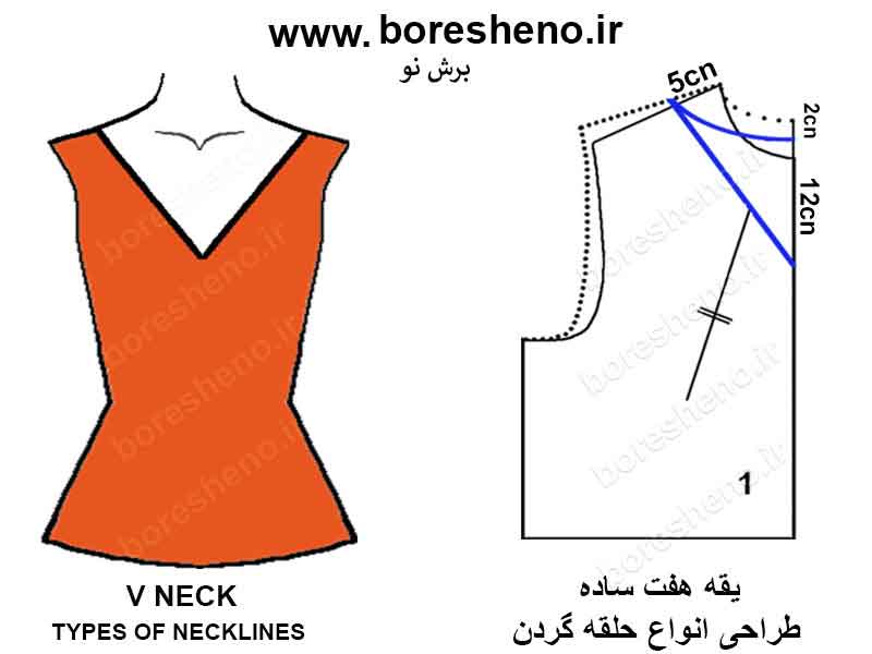 توجه: در طرح یقه هفت در بالاتنه پشت طرح هلال گرد متاسب تر از خط مورب هفت می باشد.